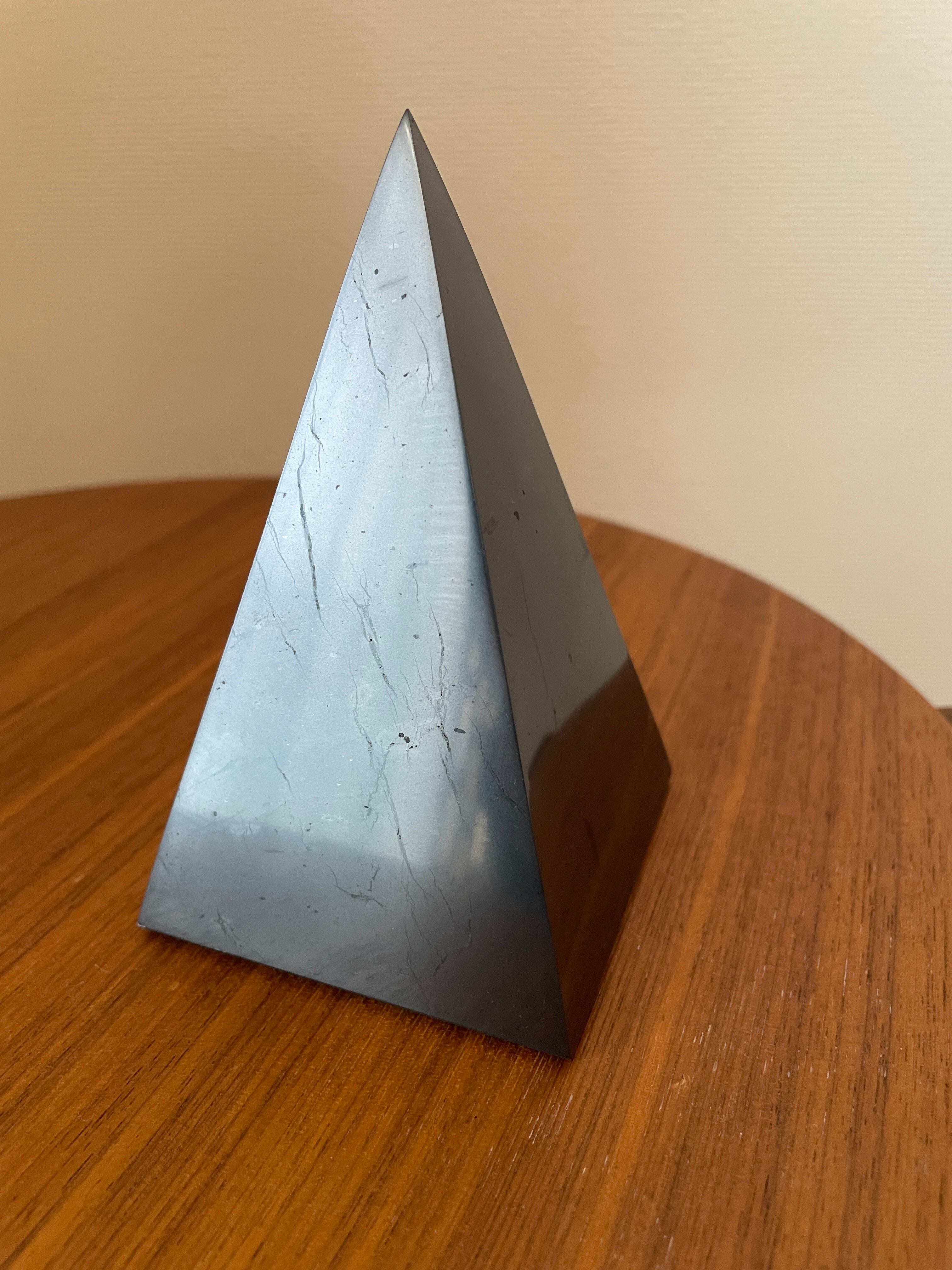 シュンガイトのピラミッドは、生命力の量を調整することで身体にバイオエネルギーを供給します。特定の周波数に同調されたピラミッドのエネルギー場は、フィードバックの原理を利用して身体と相互作用しています。ピラミッドは細胞の周波数に同調し、共鳴を引き起こします。そうすることによって、シュンガイトのピラミッドはエネルギーのバランスを整えることができます。