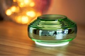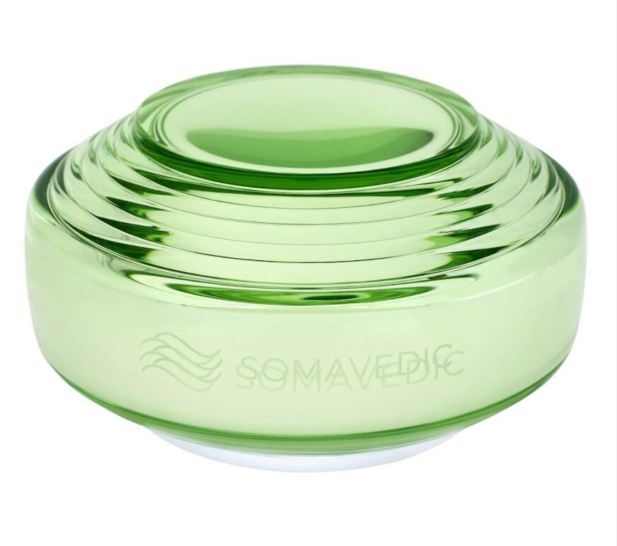 引き続きグリーンを継承していますが、セカンドジェネレーションは従来のヴェディックよりもやや黄味を抑えたグリーンとなっており、再生のイメージの高くなっています。クリスタルガラス容器の内側は銀でコーティングされています。ヴェディック セカンドジェネレーション内部コーティングも銀の持つ高い波動を利用するため銀を採用しています。銀は波動が高く、ソマヴェディックの波動が更に高くなるよう採用されています。電源を入れるとパワーが虹のように広がる構造です。