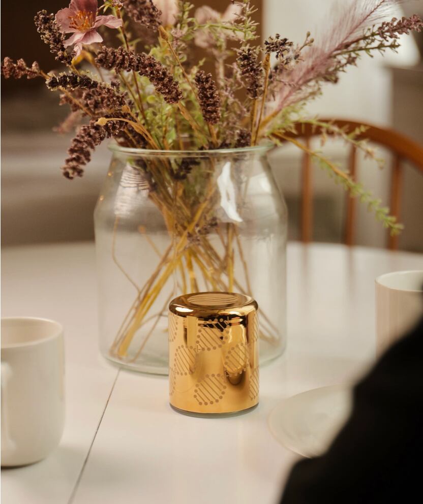 卓越した職人技による手吹きクリスタルガラス。その内側には24K純金コーティングが贅沢に施されています。